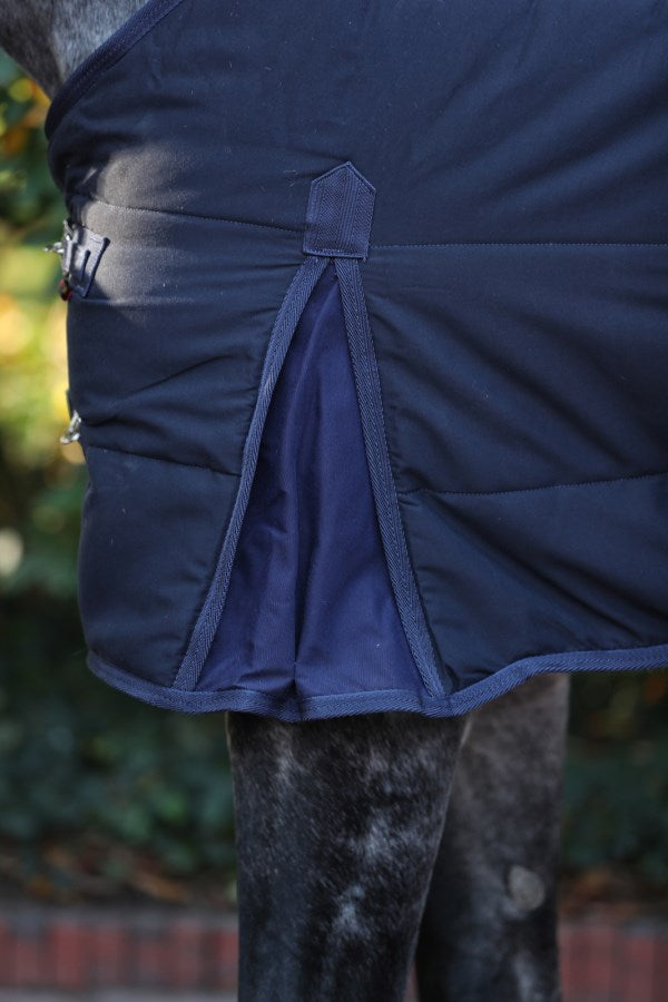 • jolie couverture d'écurie avec surpiqûre espacée et fermeture croisée au niveau de la panse