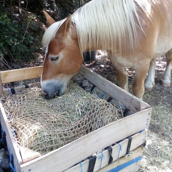Notre filet à foin sans nœuds est très doux et très souple pour ne pas irriter les gencives de vos chevaux. Il est inodore, imputrescible et très résistant à l'usure.