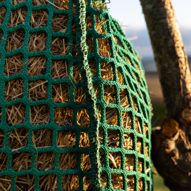 Notre filet à foin sans nœuds est très doux et très souple pour ne pas irriter les gencives de vos chevaux. Il permet la pratique du slow feeding, c'est à dire une ingestion lente et régulière du foin. En se rapprochant du rythme d'ingestion naturel, le slow feeding favorise le système digestif de vos chevaux et l'équilibre de leur alimentation.