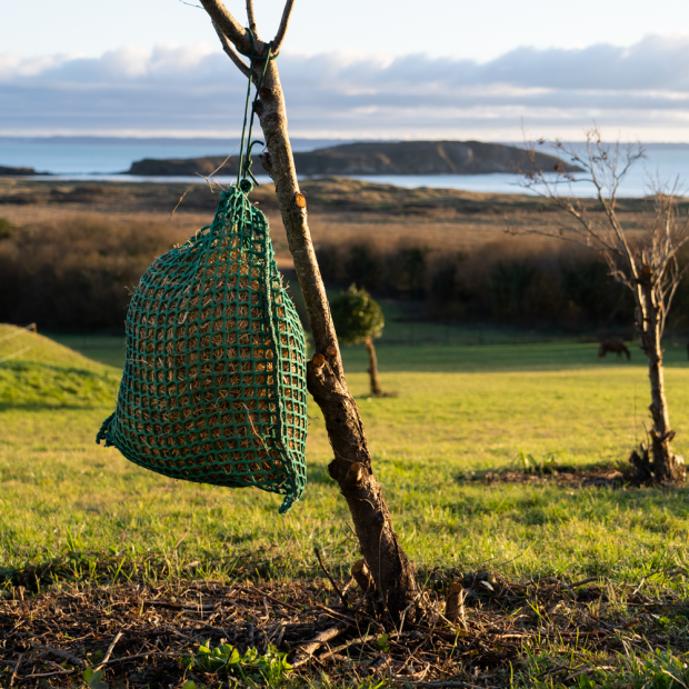 Large choix de petits et grands sacs à foin pour nourrir vos chevaux dans un box, un van ou un paddock. Idéal pour distribuer des portions de foin de 6 kg à 20 kg. Disponible en petite et grande maille.